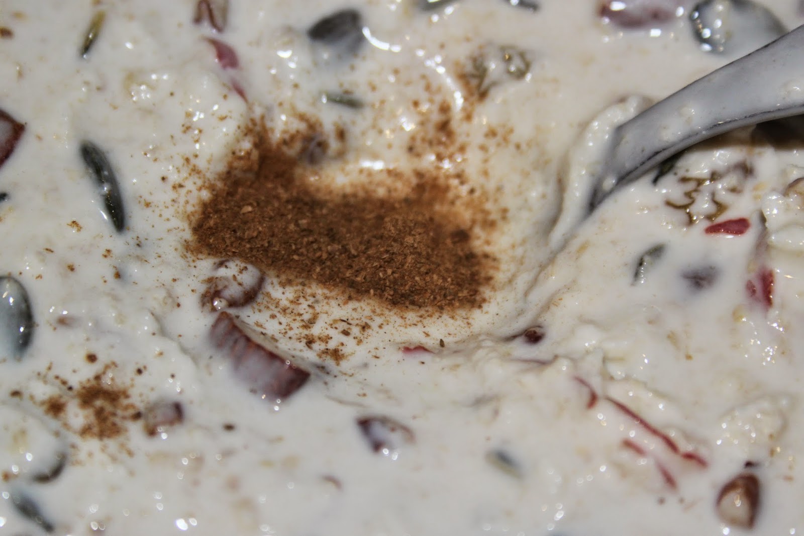 Le lendemain matin, le birchermüesli est bien crémeux, le liquide a été absorbé par les flocons d’avoine et les fruits secs (surtout les raisins secs).