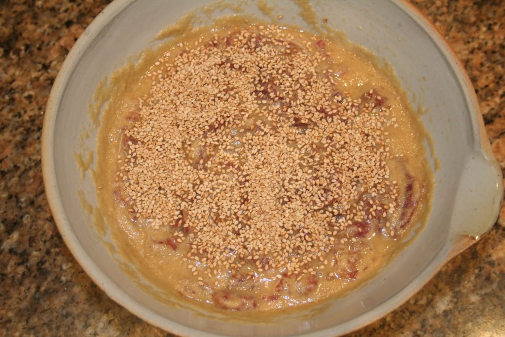 - Et couvrir le tout de graines de sésame grillé, puis bien mélanger. Fermer avec un film alimentaire et réserver au frais pendant 3 heures. La viande va absorber presque tout le jus.