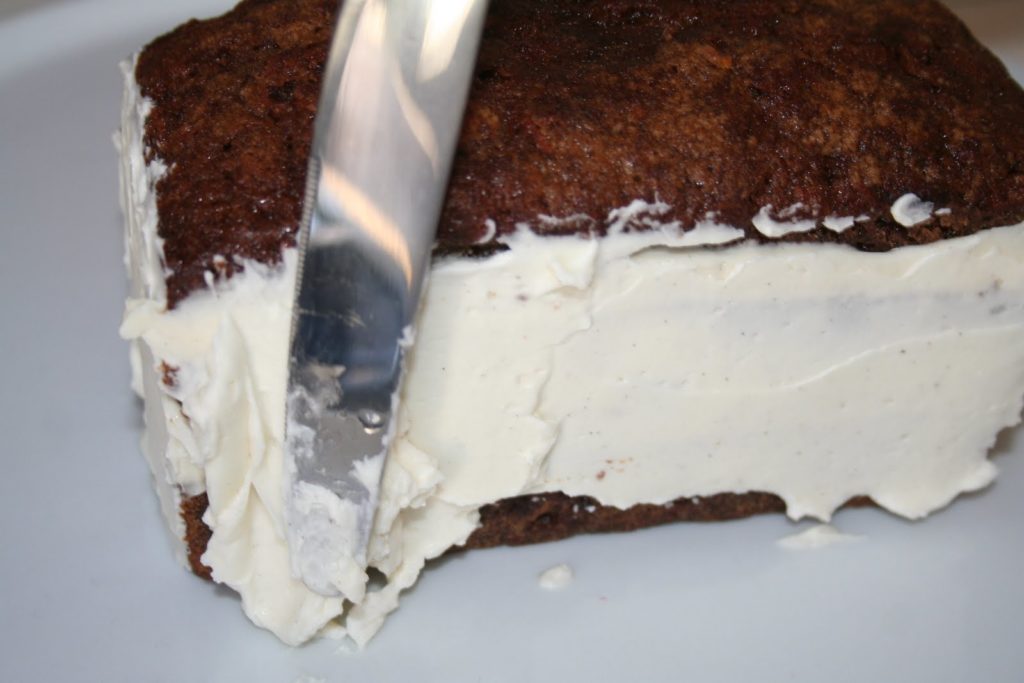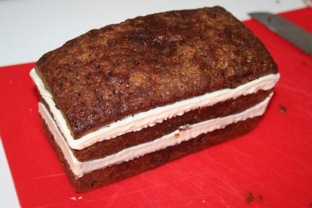 - Remettre la base du gâteau dans le moule puis mettre une couche généreuse de glaçage en l’étalant. Mettre la deuxième partie du gâteau et mettre uen deuxième couche de glaçage.