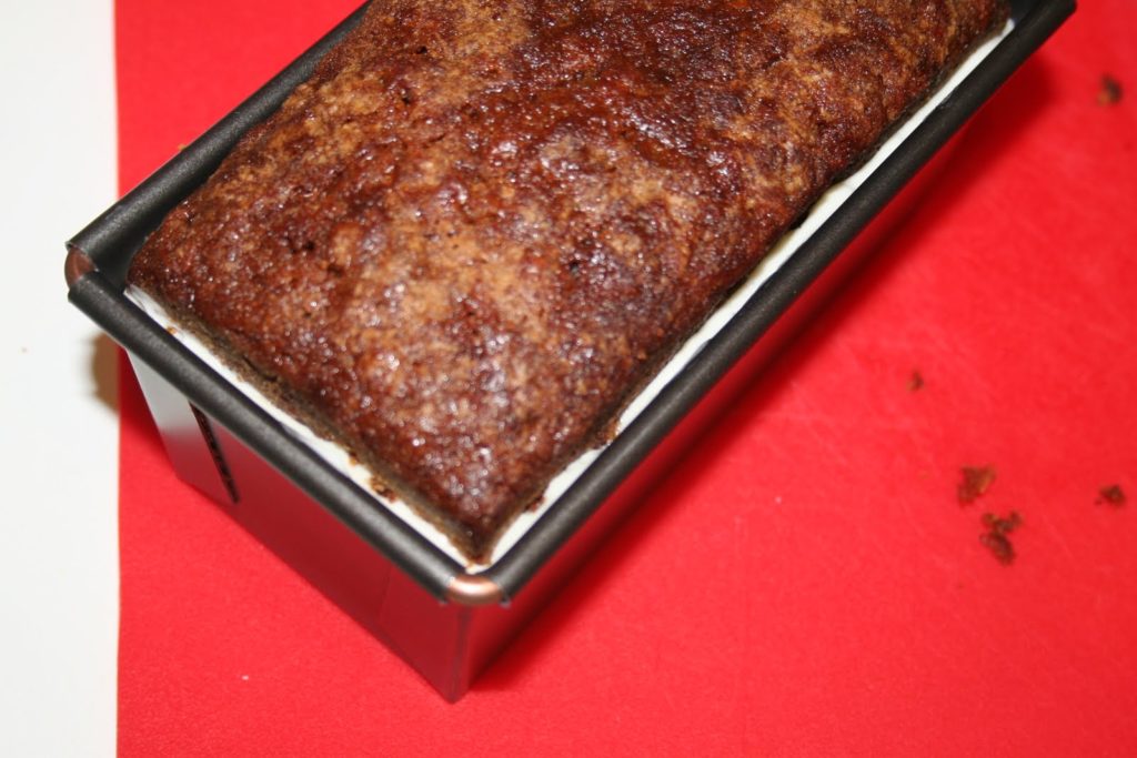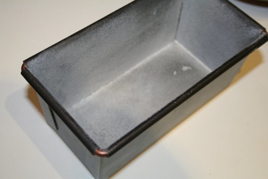 - Beurrer et fariner (j’ai mis ma bombe de gras que l’on trouve dans ma recette de canelés). Je rappelle que pour les photos j’ai utilisé un demi moule à cake de 80mm sur 160mm avec la moitié des ingrédients.