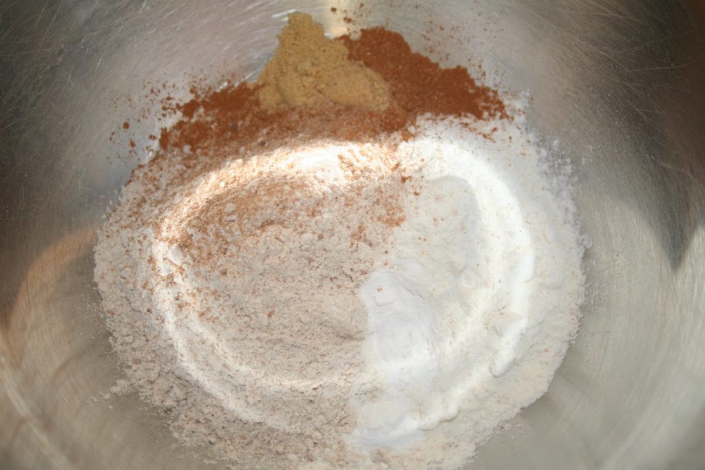 - Mélanger dans un bol, les épices, le bicarbonate, la levure, le sel, la farine, le sucre et la vergeoise dans un bol.