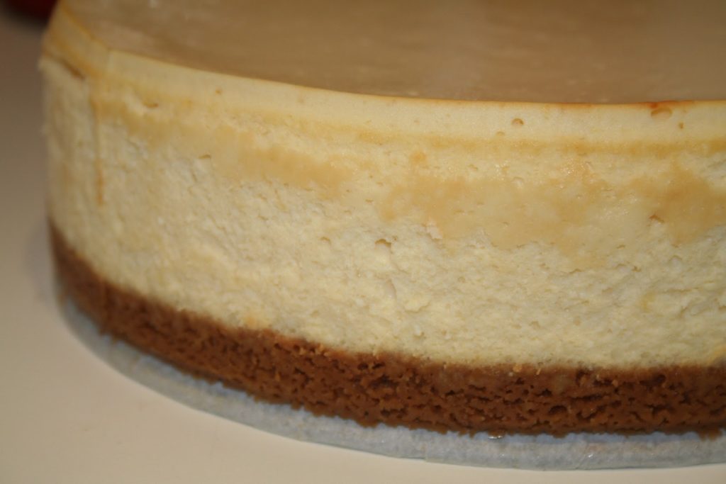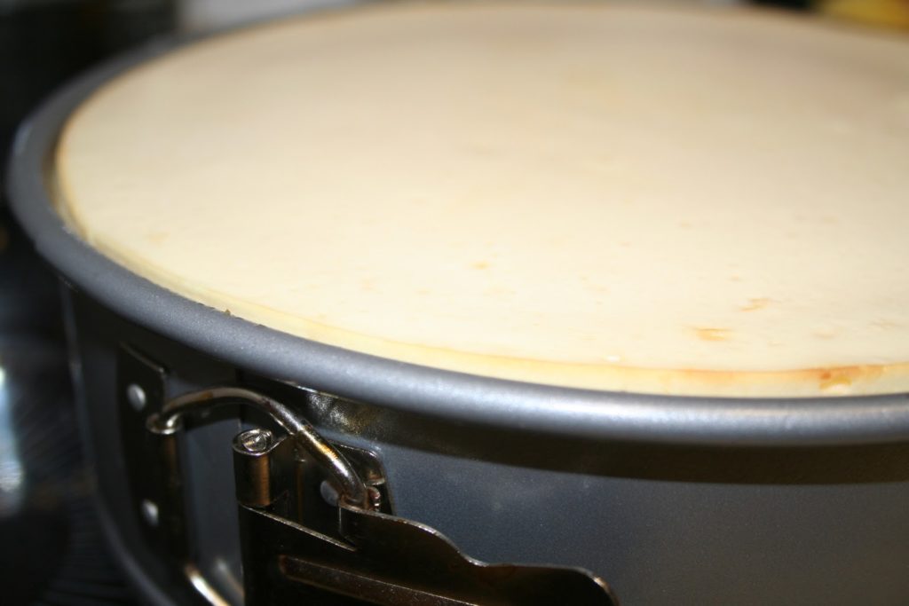 - Pour un cheesecake extra-moelleux, placer une petite casserole d’eau bouillante en bas du four pour créer une vapeur dans laquelle va cuire le gâteau.Laisser cuire au four pendant 10 minutes à 200°C puis baisser la température à 90°C et cuire pendant 30 minutes. Le cheesecake est à ce stade figé sur les côtés, et un peu tremblotant au centre. C’est exactement ce que l’on recherche! Laisser refroidir le gâteau à température ambiante dans le four. Cela prend environ deux heures!