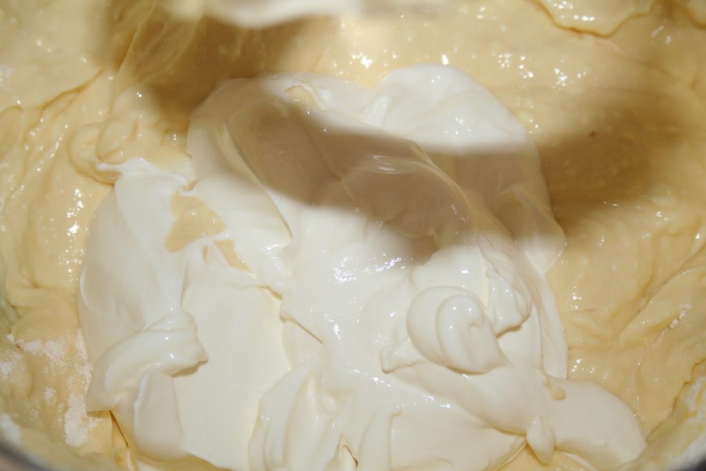 - Et verser le jus de citron (1+1/2 cuillerées à café). Ajouter également le zeste d’un demi citron, les oeufs entiers et le jaune.