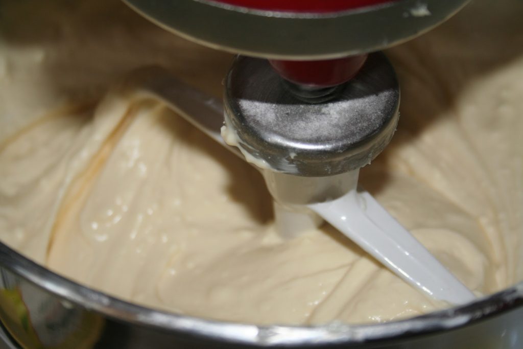 - Préparer ensuite la crème du cheesecake. Mettre le cream cheese à température ambiante dans le bol du robot kitchenaid ou kenwood. On peut s’en passer et le réaliser dans un grand bol avec un fouet manuel. Le principe est de ne pas « surbattre » la crème!