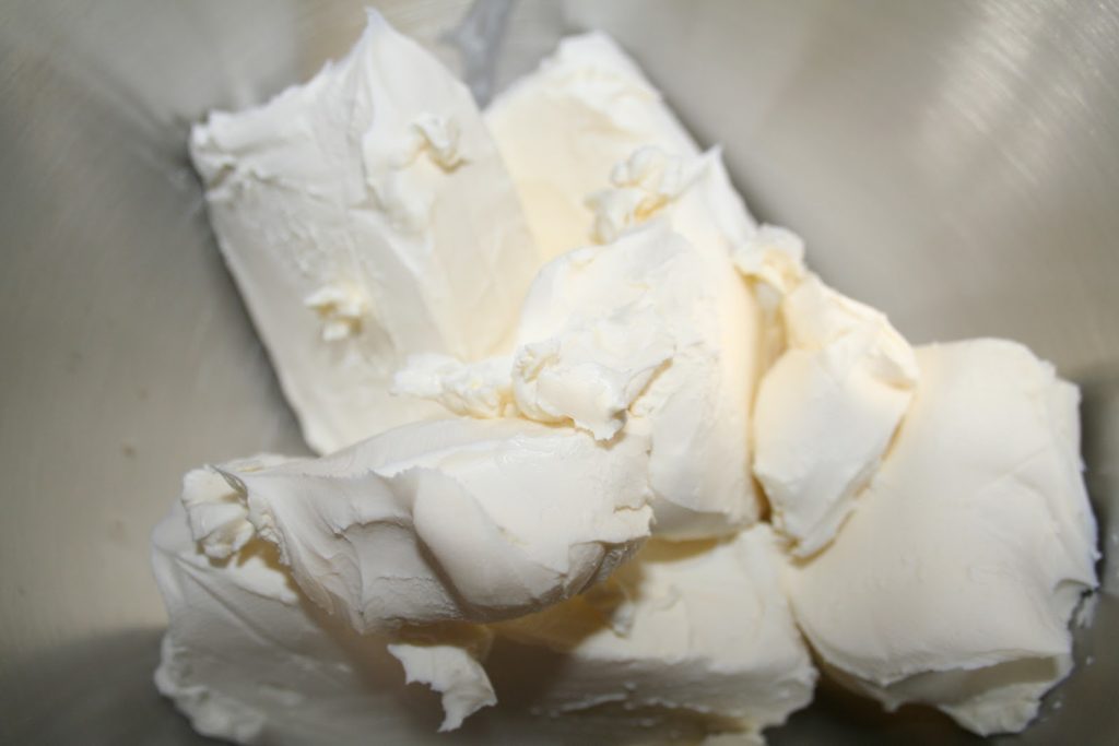 - Un point important avant de commencer:Les ingrédients doivent être à température ambiante (surtout le cream cheese) pour éviter les grumeaux.Voici le cream cheese. On trouve en France principalement la marque Philadelphia, mais tant que c’est du cream cheese à teneur non réduite en matière grasse, c’est bon!
