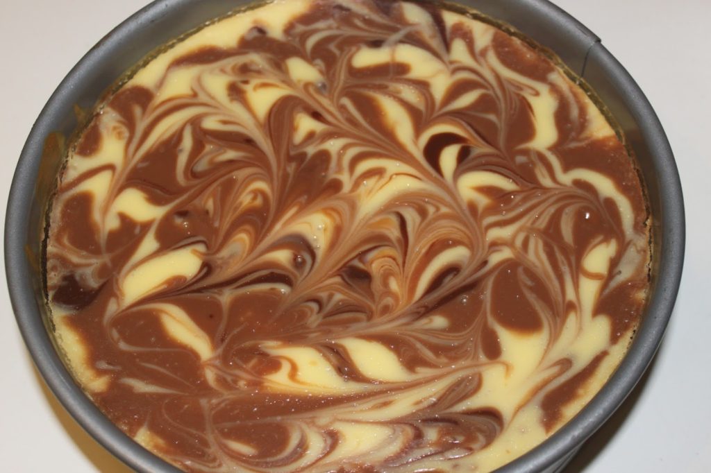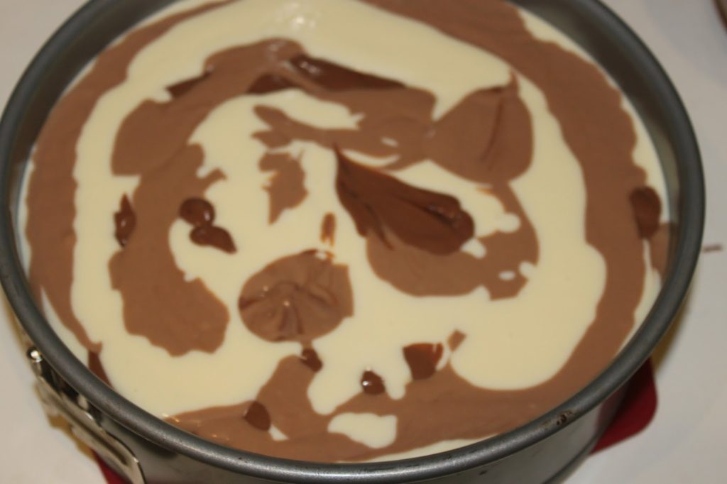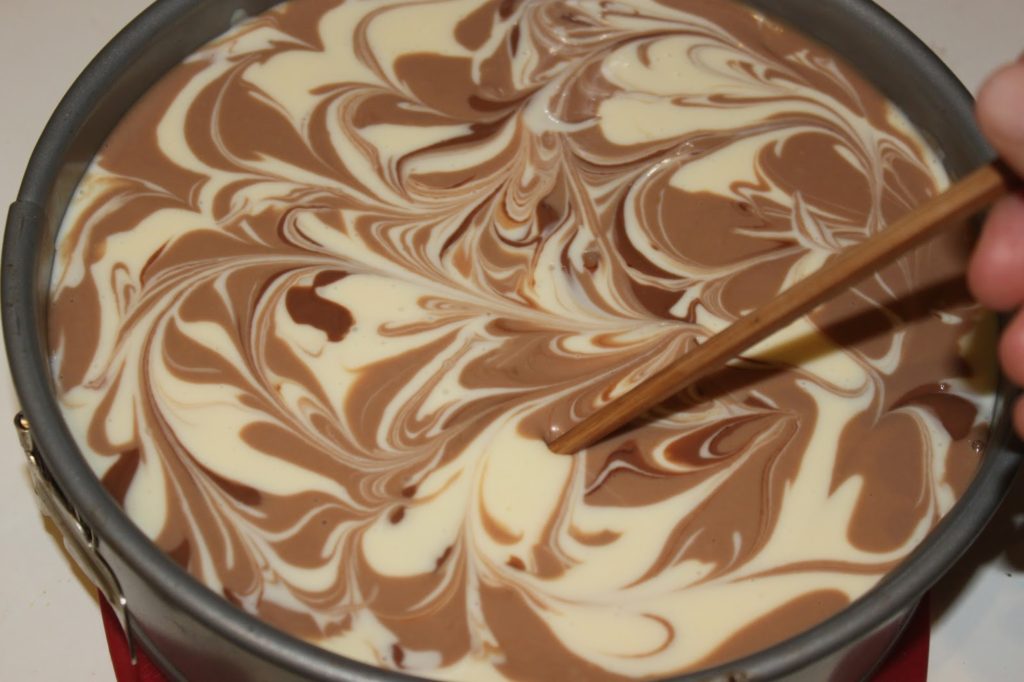 - Avec une baguette, mélangez doucement pour obtenir de belles marbrures.