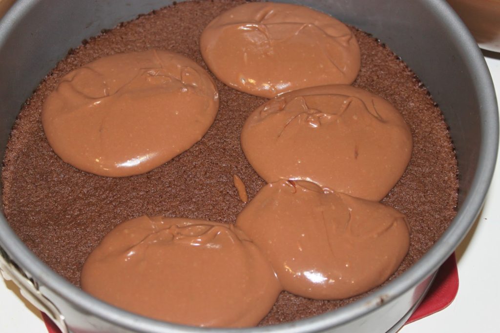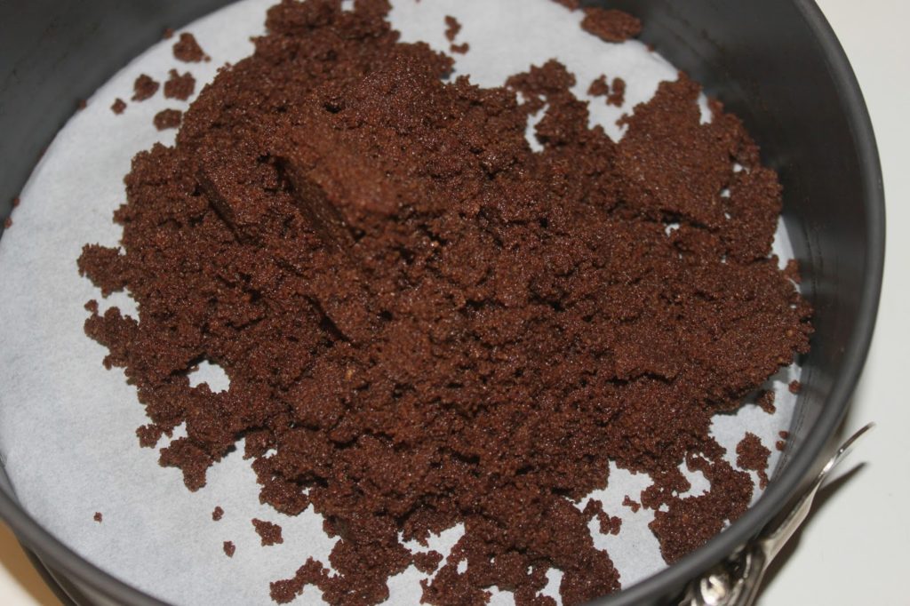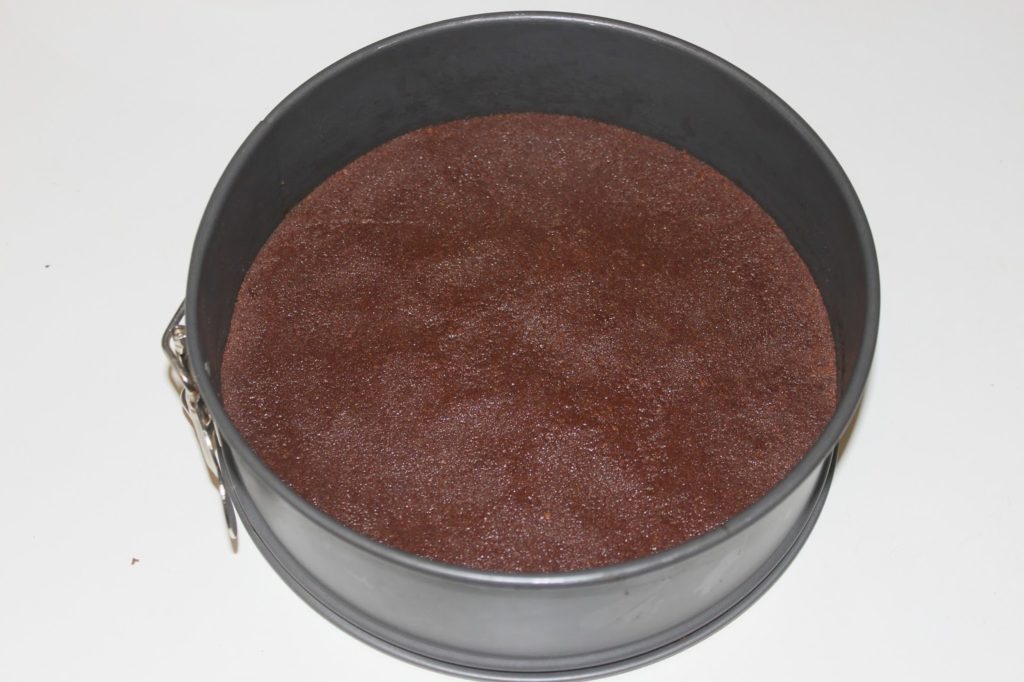- Versez dans un moule à charnière de 23cm. Je place un papier sulfurisé dans le fond du moule.