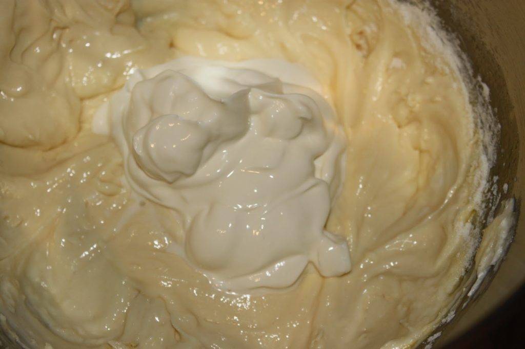 - Versez la crème aigre, que vous pourrez remplacer par de la crème fraiche entière épaisse.