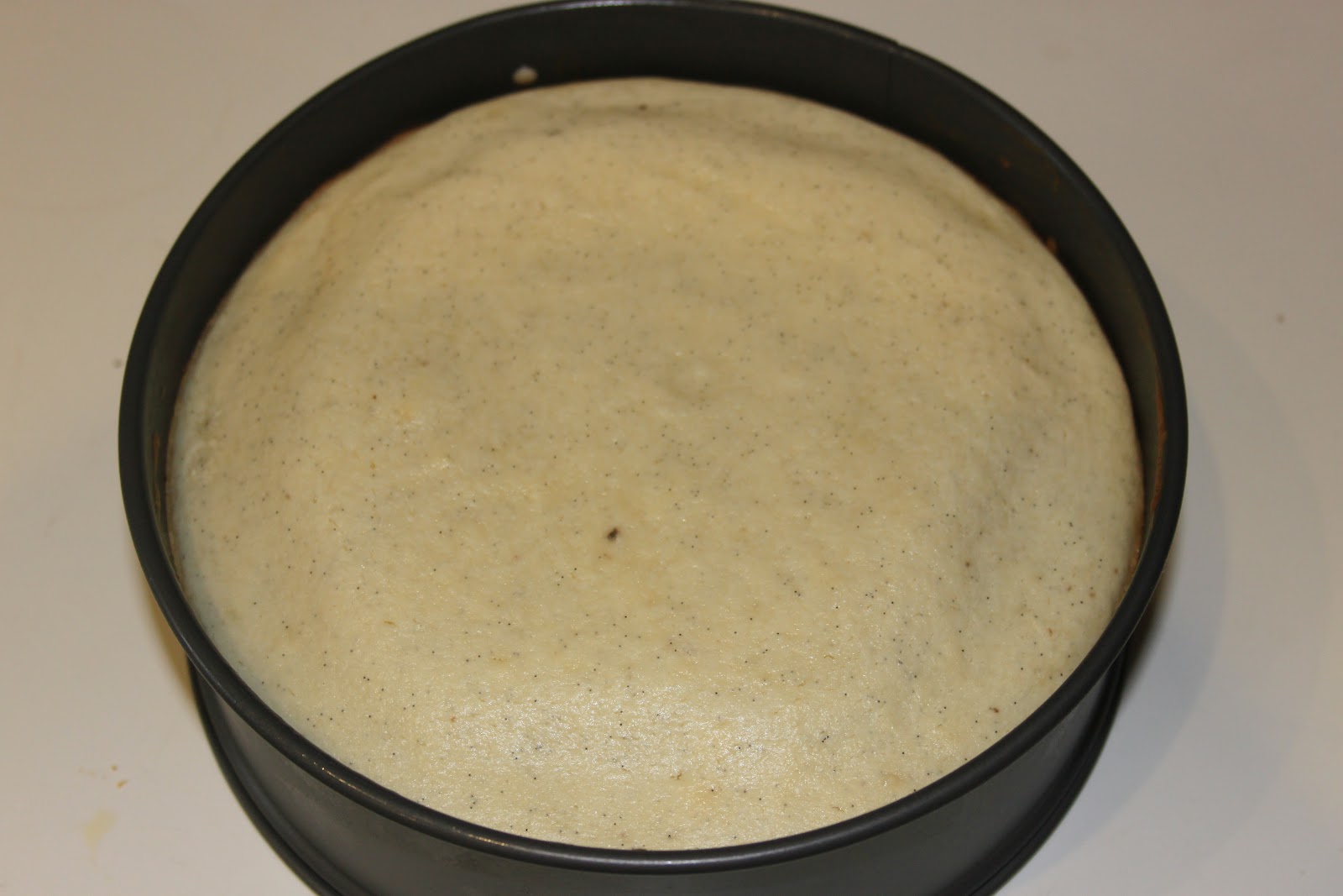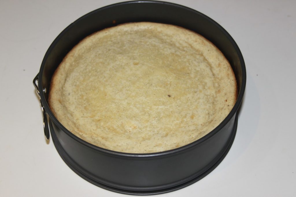 Au bout d’une demi-heure, le cheesecake retombe et devient parfaitement plat! C’est ce que l’on veut!