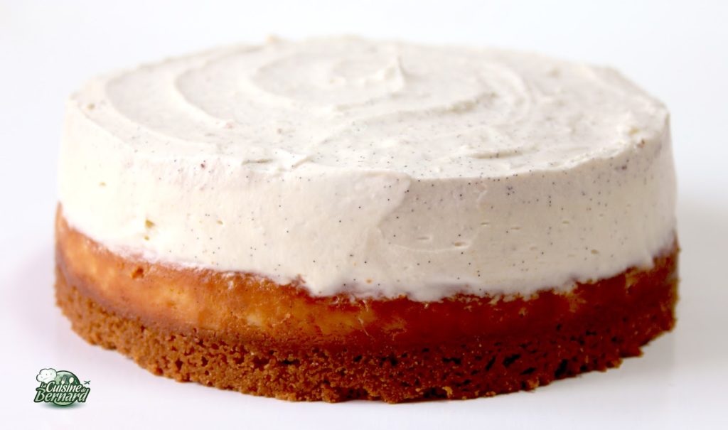 Enfin un autre cheesecake sur mon blog de cuisine! Après le premier qui a eu visiblement beaucoup de succès auprès de vous (recette ICI!), je vous propose cette autre version encore plus folle! Ce cheesecake dégusté bien frais régalera tous les amateurs de ce gâteau inimitable, bien qu’il en existe des quantités de version. Ma première était bien crémeuse. Celle-ci sera plus ferme (bien qu’onctueuse), mais avec une couche incroyable de mousse au chocolat blanc et cream cheese! Le tout est généreusement parfumé avec des gousses de vanille (trois en tout!). Une belle part de ce merveilleux gâteau nous rafraichira pour l’été, mais satisfera tous les palais des gourmands les plus exigeants!