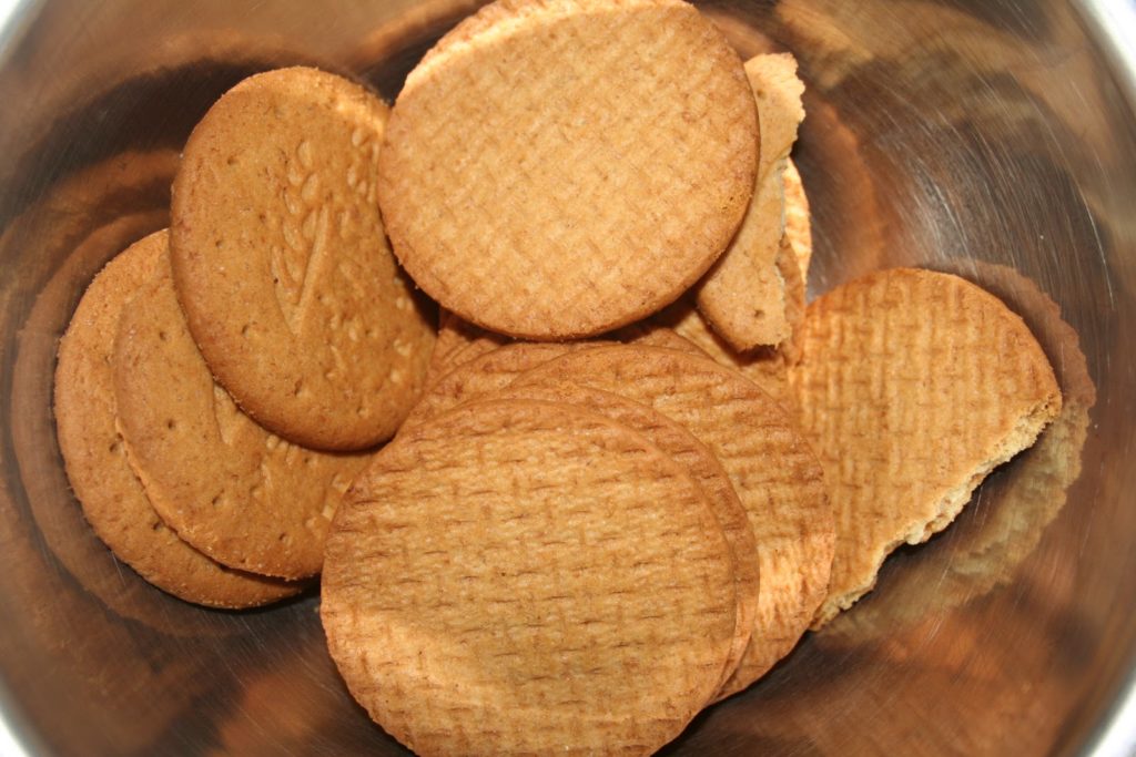 Commencer préchauffer le four à 160°C et par mettre les biscuits digestives dans un large bol.