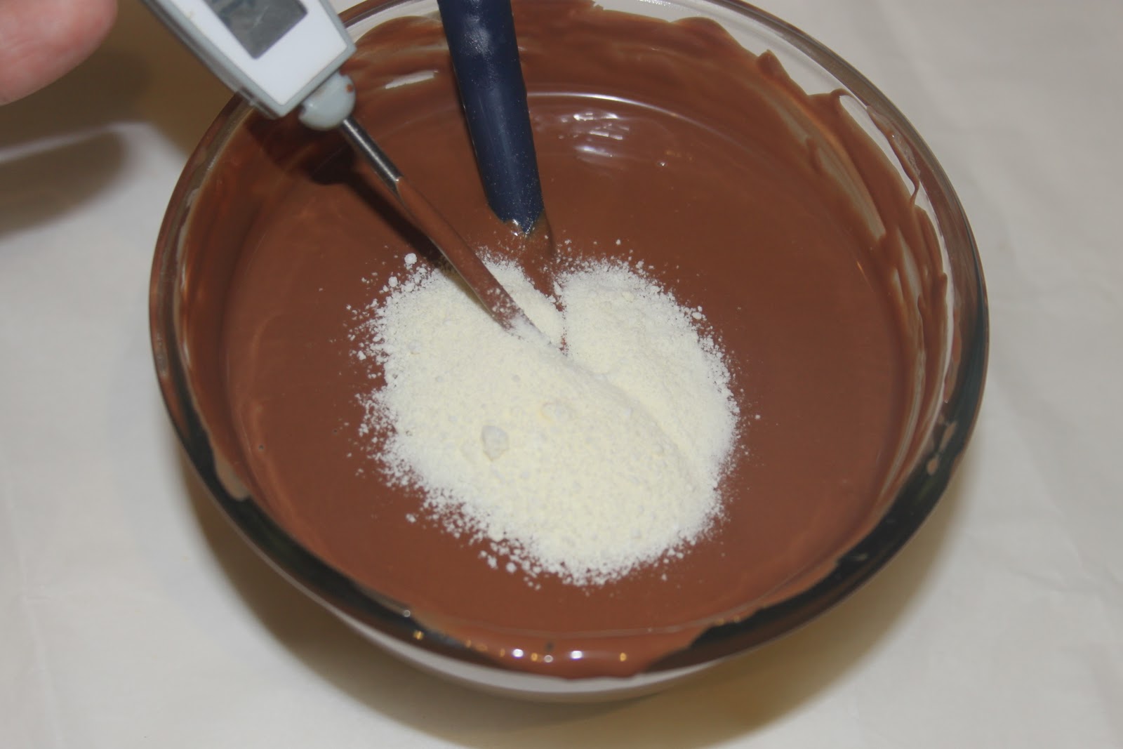 Fondre le chocolat et le tempérer avec la méthode du cacao mycryo. Voir la recette ICI!
