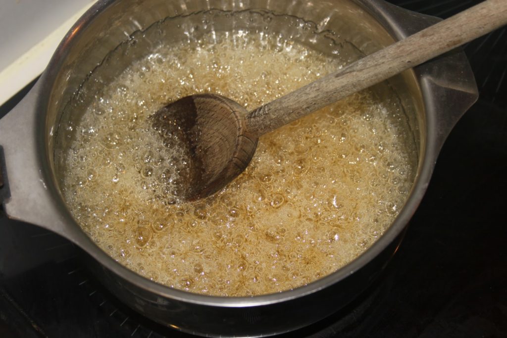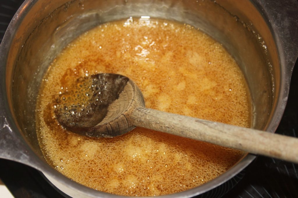 Jusqu’à ce que le caramel soit aussi dure qu’une vitre (il casse quand même plus facilement!).
