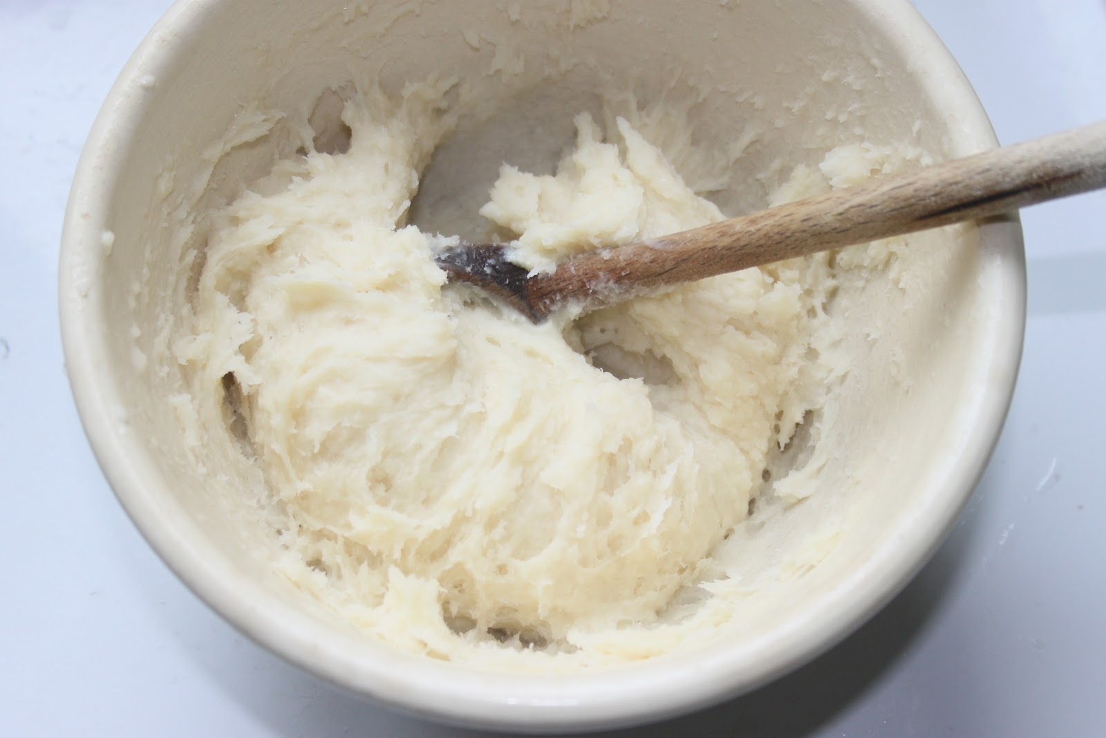 - Mélanger aussitôt avec beaucoup d’huile de coude. C’est prêt!
