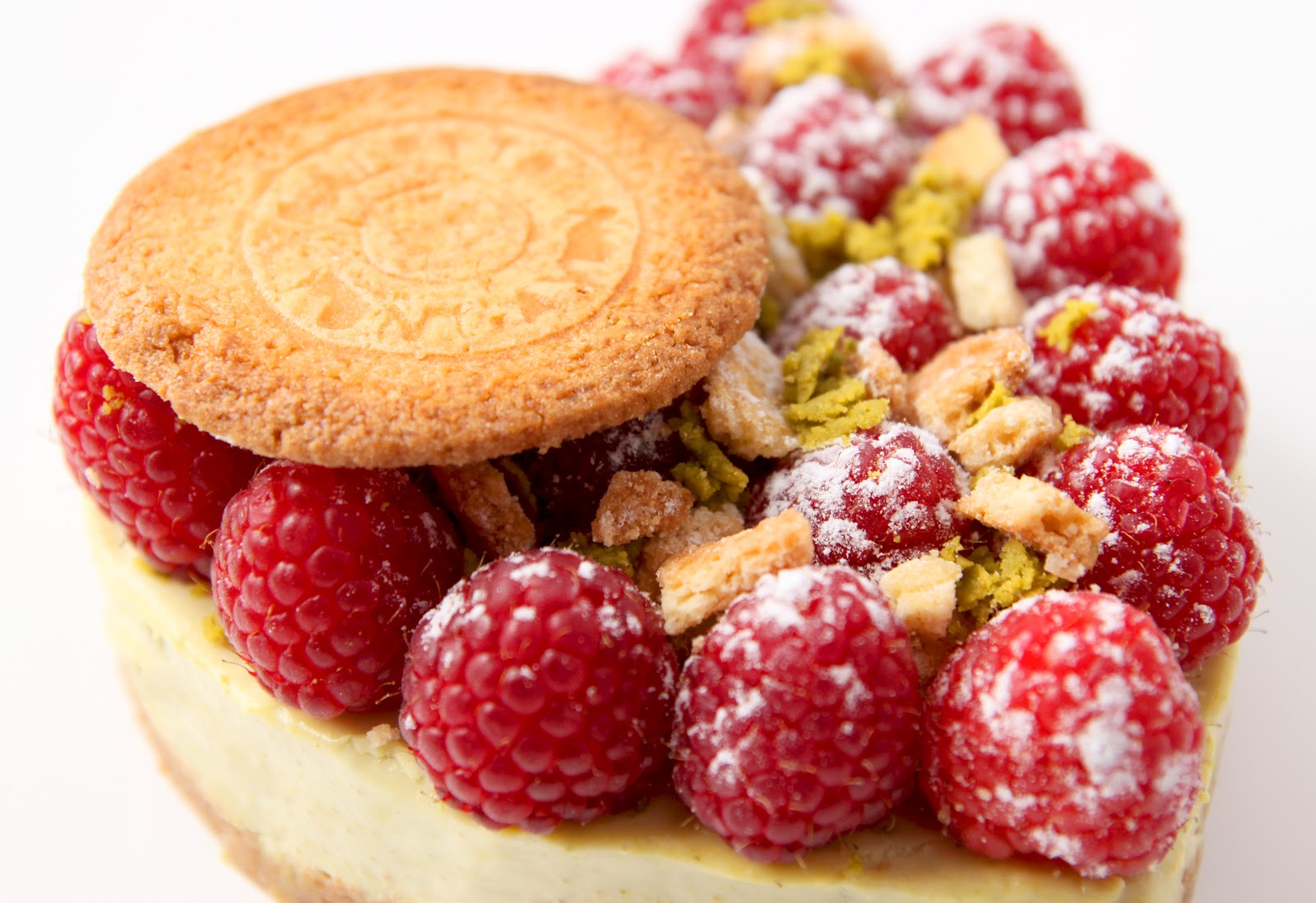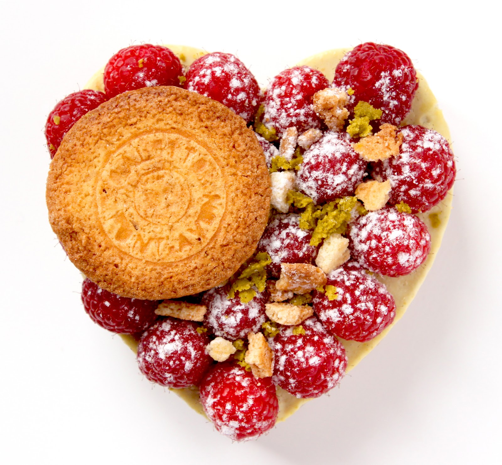 Voici quelques temps, Traou Mad avait beaucoup aimé mon petit reportage que j’avais réalisé sur leur usine à Pont Aven (voir le reportage ICI). Ils m’ont depuis demandé de réaliser quelques recettes pour leur blog: http://blog.traoumad.fr/. J’ai donc eu le plaisir de recevoir à la maison, un colis rempli de merveilles! La première recette qu’ils m’ont demandé devait être sur le thème de la Saint Valentin. Je vous offre aujourd’hui ma recette où j’ai scrupuleusement évité le chocolat (le coeur est déjà trop « cliché », alors avec du chocolat, cela devenait un peu trop!). Il s’agit d’un fond de traou mad recuit avec une panacotta à la pistache, le tout surmonté de framboises. Pour la photo j’ai mis des framboises fraîches, alors avant de me hurler aux oreilles que ce n’est pas la saison, je vous rappelle qu’il en existe des surgelées! Bonne Saint Valentin aux amoureux!