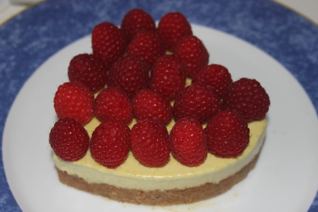 - Décorer avec des framboises fraîches ou surgelées.