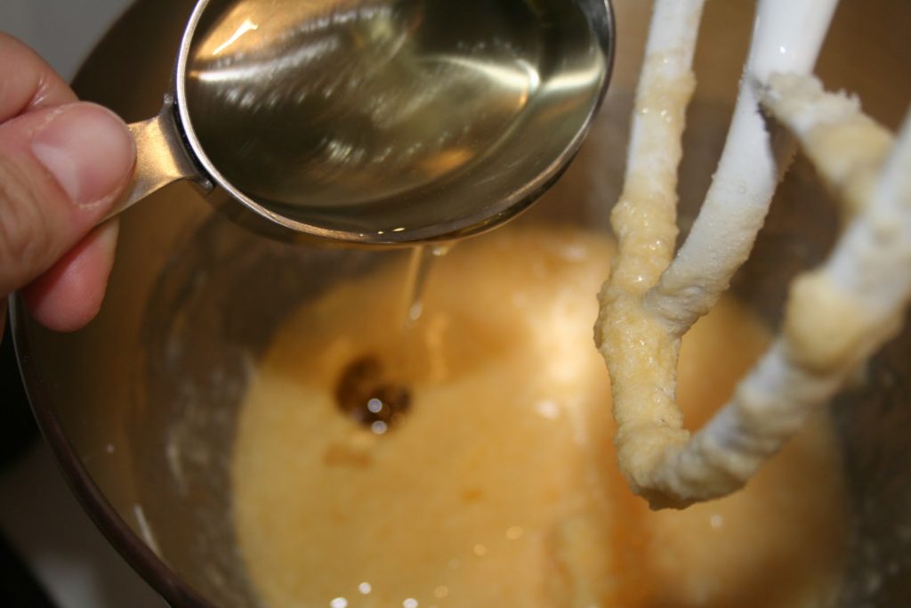 -170g de beurre doux mou -370g de sucre -3 oeufs -100g d’huile -1 paquet de levure chimique (11g) -315g de farine -180g de farine de maïs -2 cuillerées à café de sel -240g de lait demi-écrémé