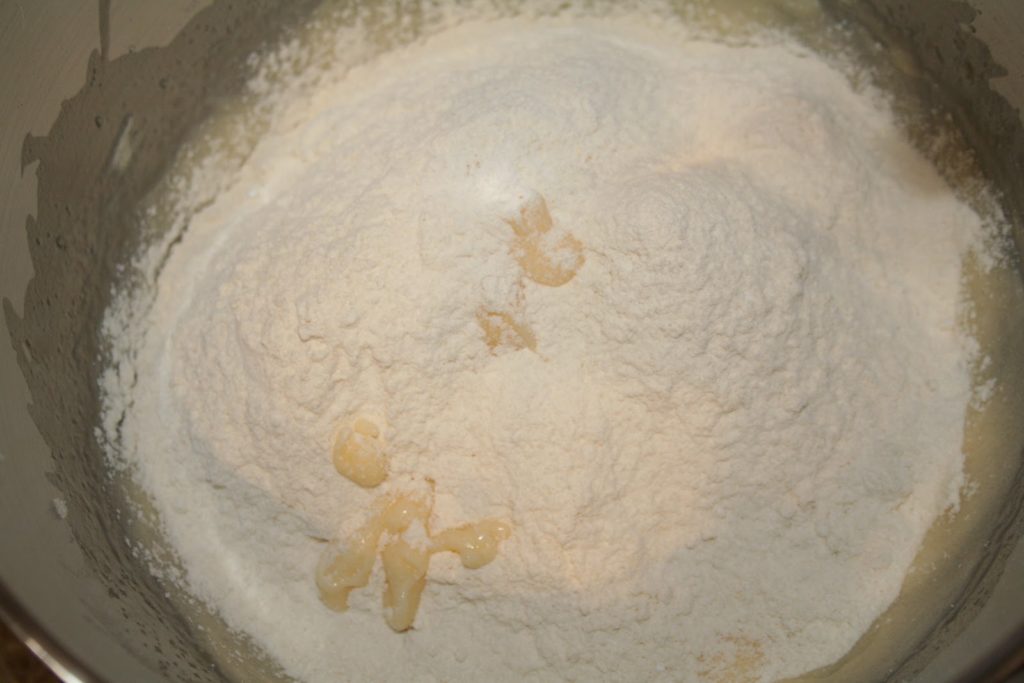 Ajouter le mélange sec (farines et levure) et bien mélanger.