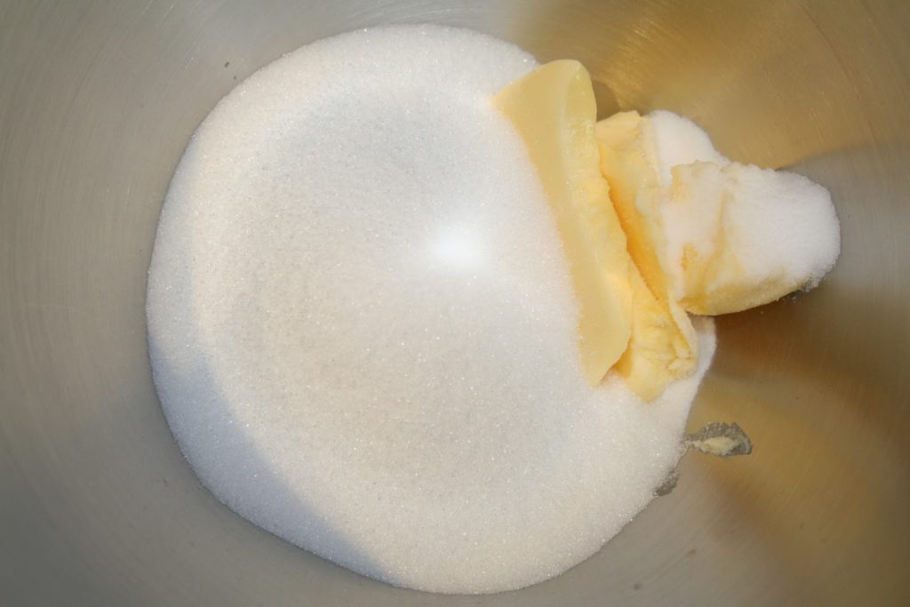 Préchauffer le four à 180°C.Mettre le beurre mou et le sucre dans un bol. J’ai utilisé mon robot kitchenaid pour tout mélanger, c’est beaucoup plus rapide!