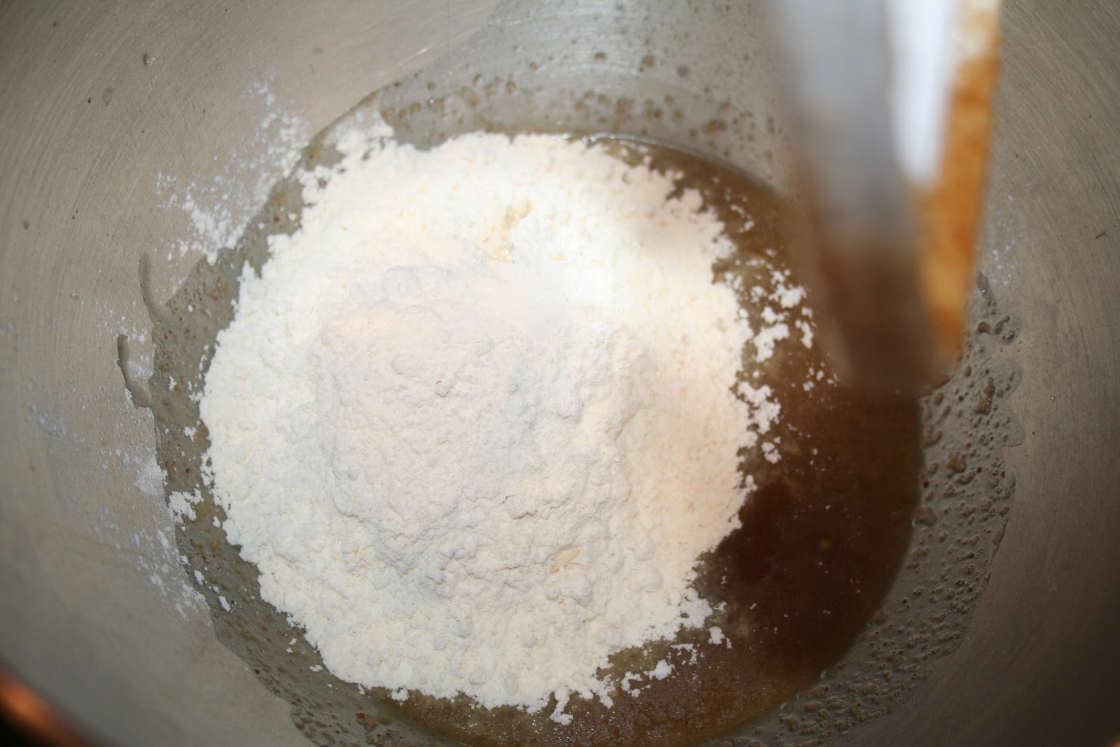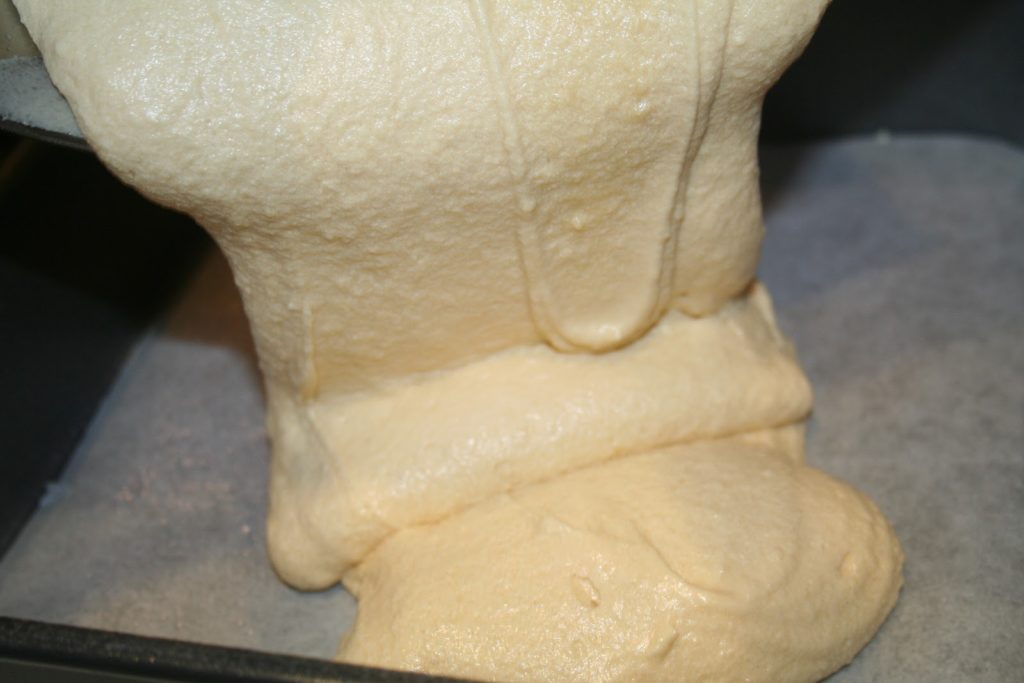 Et mélanger avec le « k » du kitchenaid ou du kenwood jusqu’à ce que la farine soit incorporée.