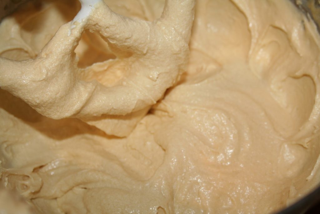 Mélanger maintenant à grande vitesse pendant 2-3 minutes pour aérer la pâte. Elle blanchit et devient plus volumineuse.