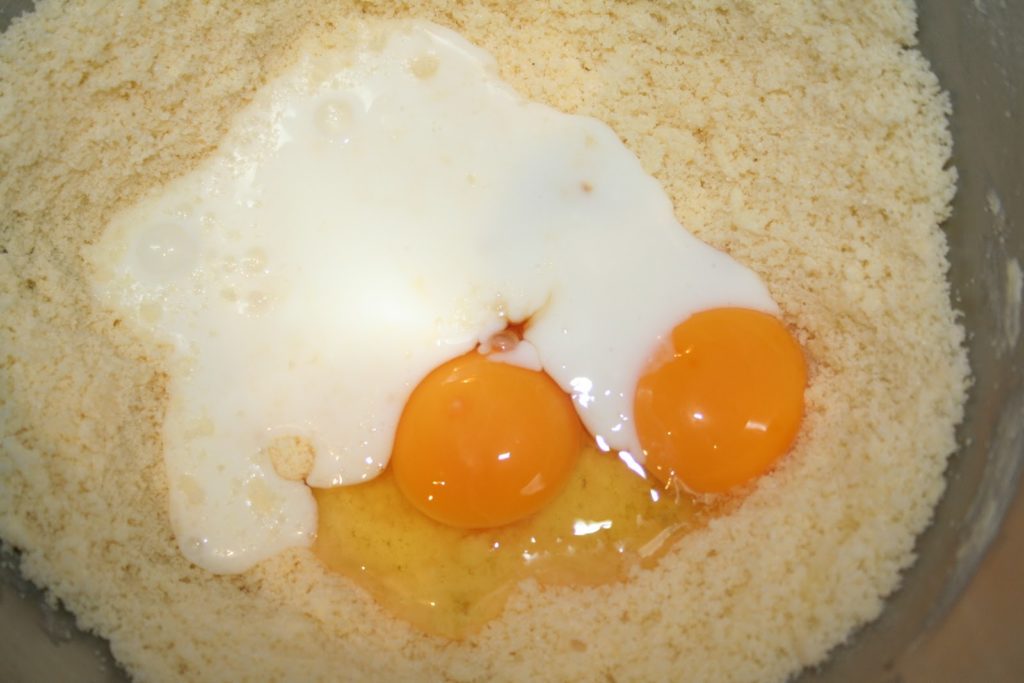 Quand le beurre est incorporé, ajouter les oeufs, la vanille et le lait fermenté.