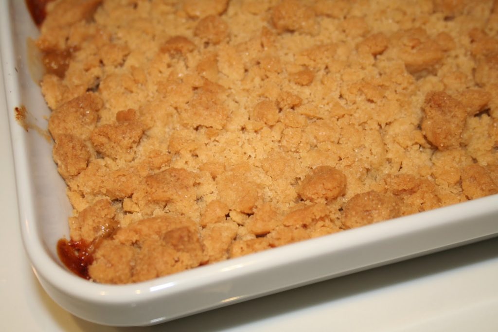 Cuire à 180°C pendant 25-30 minutes en surveillant sur la fin pour ajuster la cuisson à son propre four! Le crumble doit être bien doré sur toute sa surface et les fruits commencer à caraméliser sans pour autant brûler!!