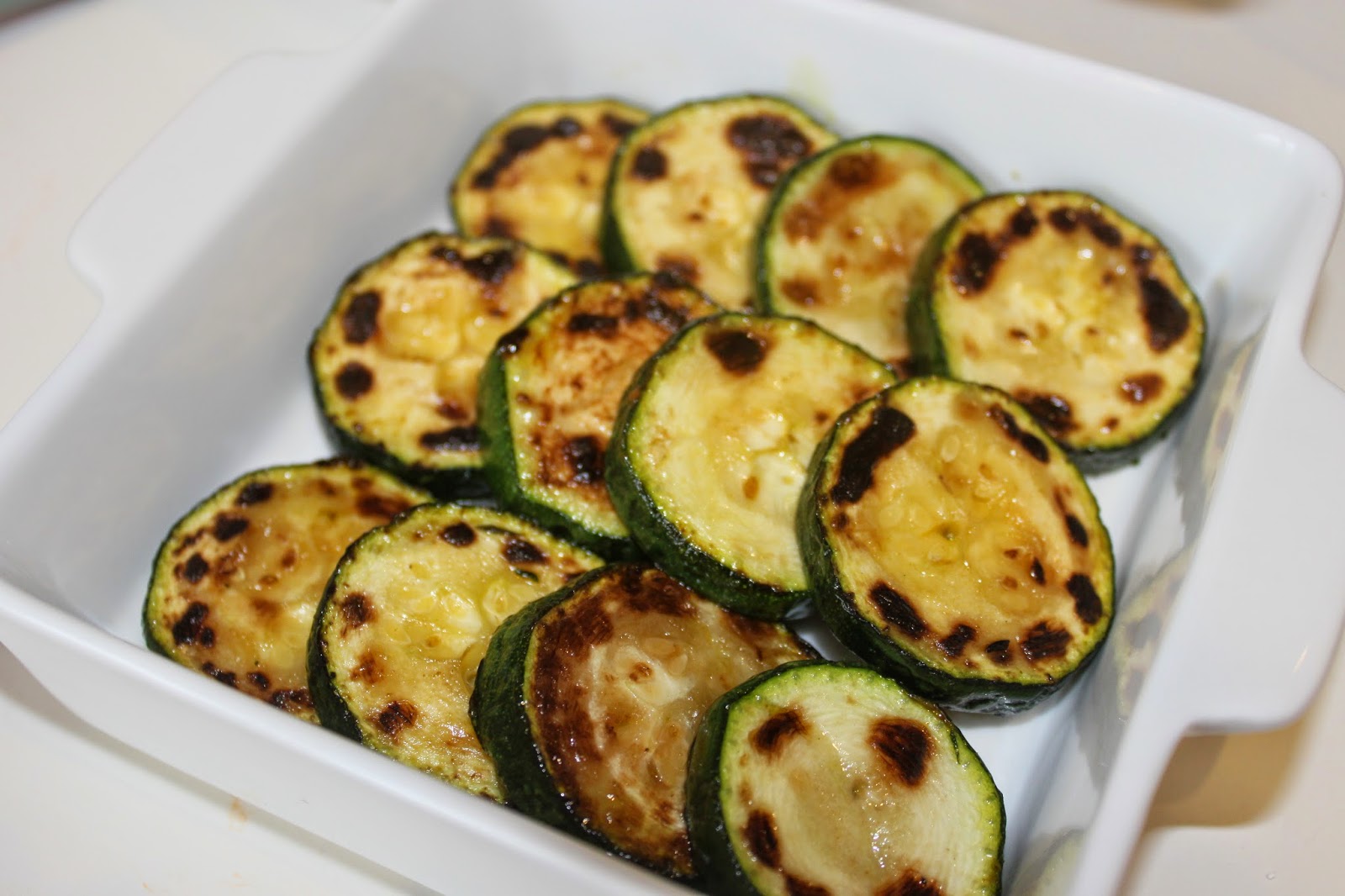 - Dans un plat à gratin (sur la photo c’est un petit, mais du coup j’en ai fait presque 3), placez les courgettes.