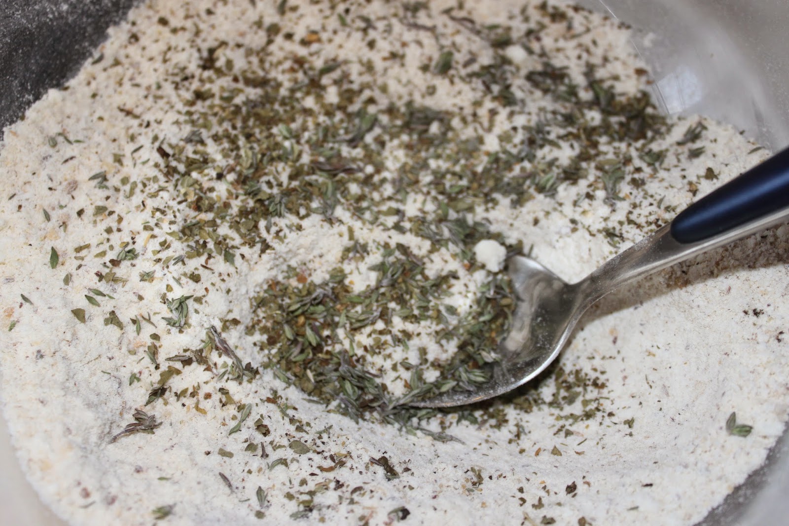 - Ajoutez un peu de sel, de poivre, d’origan et de thym (à votre goût !).
