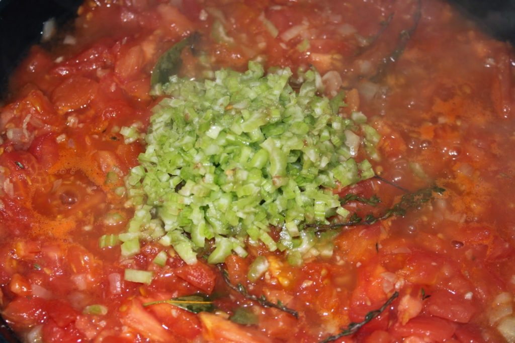 - Puis les tomates pelées (pédoncules enlevés) coupées en petits morceaux.