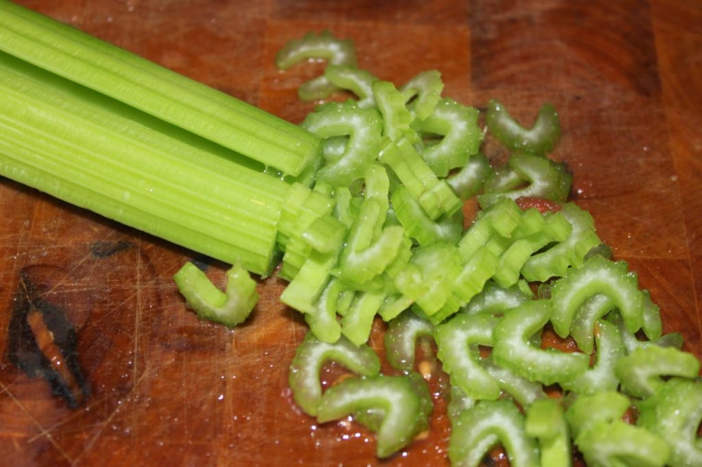 Coupez les deux branches de céleri en petits morceaux.