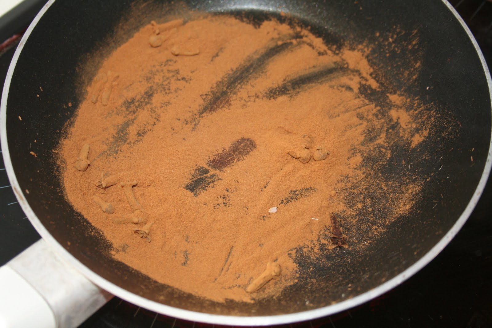 - Puis la cannelle et le cumin et le clou de girofle en poudre. Laisser légérement griller. Toujours ajouter au mortier et bien mélanger.
