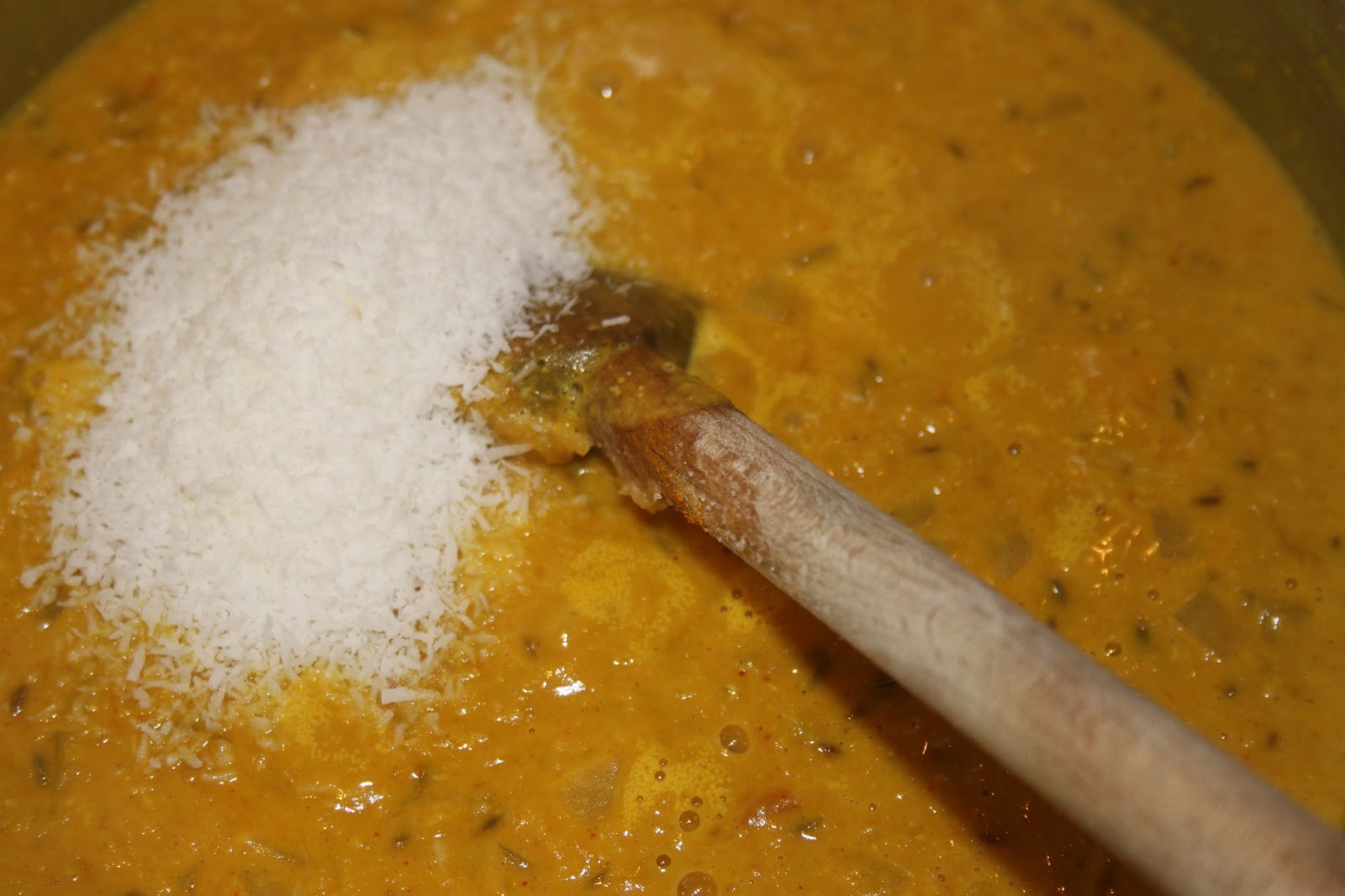 - Ajouter également le sel, le poivre et la noix de coco râpée.