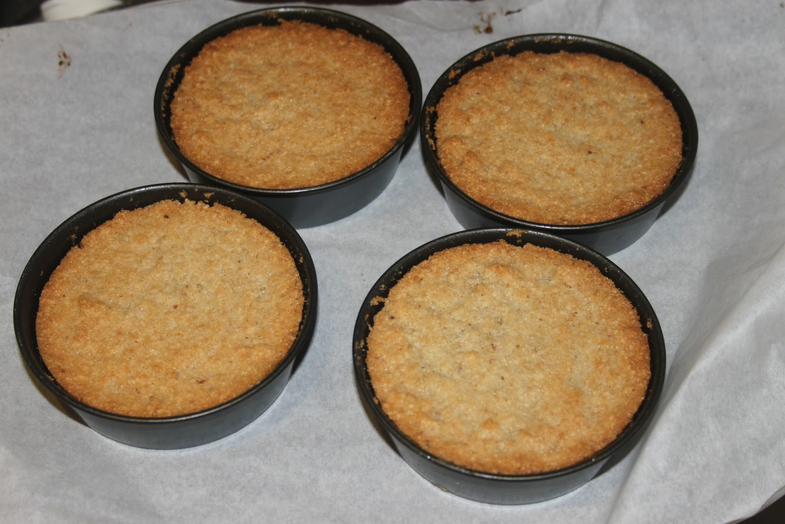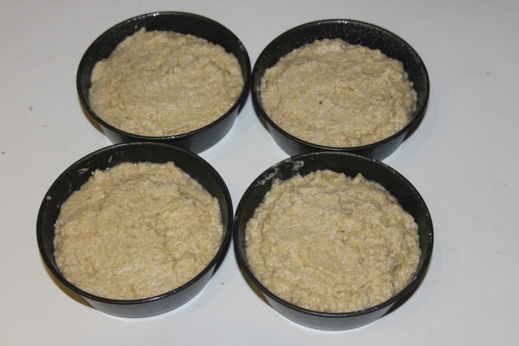 - Disposer la pâte dans quatre petits moules de 9cm de diamètre, ou un seul de 18, préalablement graissés avec une bombe de démoulage.