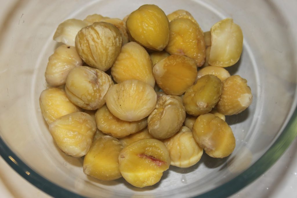 - Broyer au hachoir à viande ou au mixeur les châtaignes en en une purée fine.