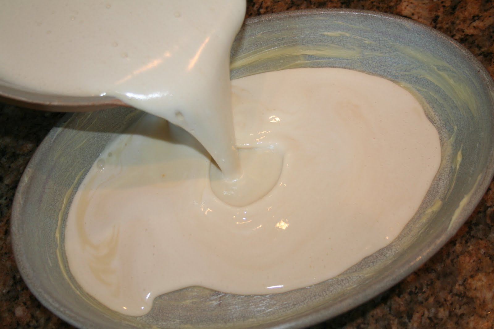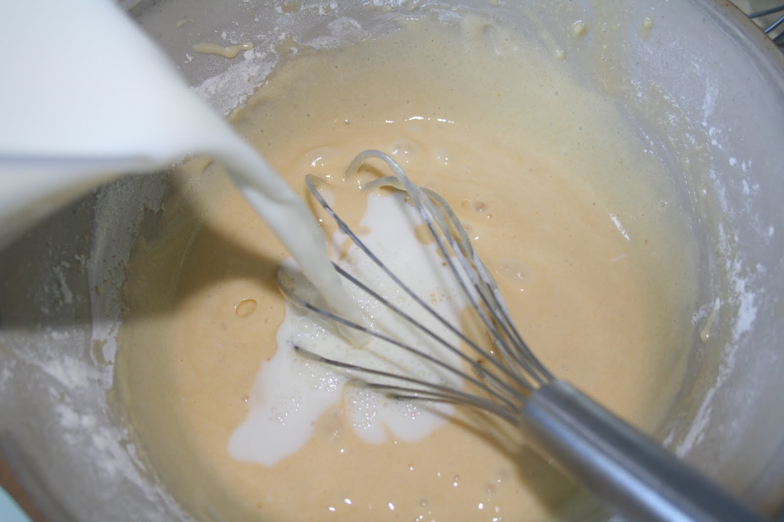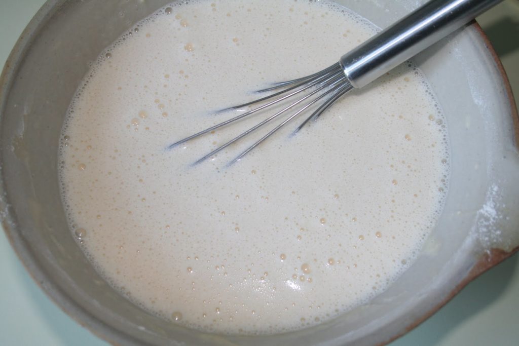 - Puis après mélange, le reste du lait. En procédant de cette façon, on évite complétement les grumeaux! On obtient en fait une sorte de pâte à crêpes.
