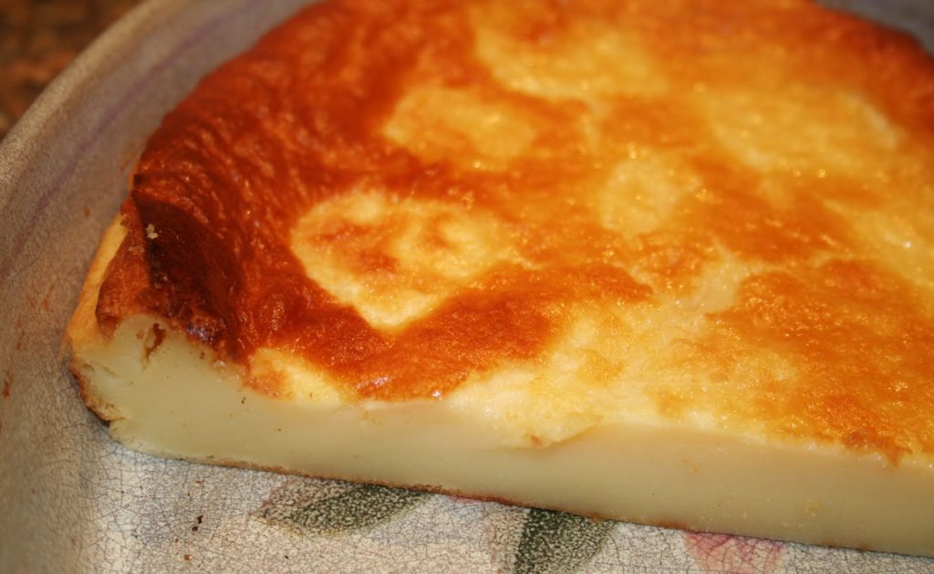 - Verser la pâte dans le plat. La hauteur du far cuit est la même que la celle de la pâte versée. Il faut moins de deux centimètres! On peut à ce stade ajouter les pruneaux ou les raisins marinés dans du rhum dans le plat!