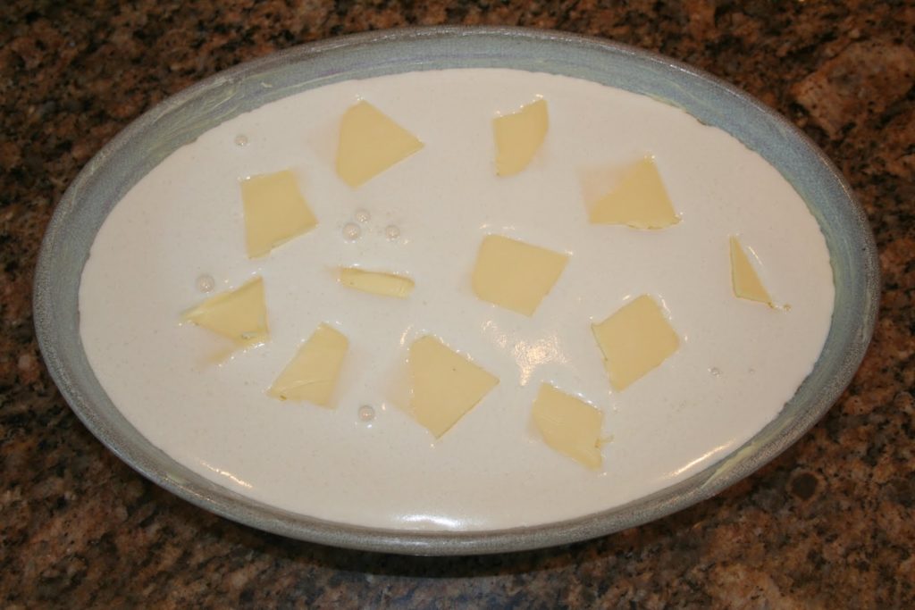 - Ajouter le reste du beurre salé coupé en fines lamelles sur la surface de la pâte…