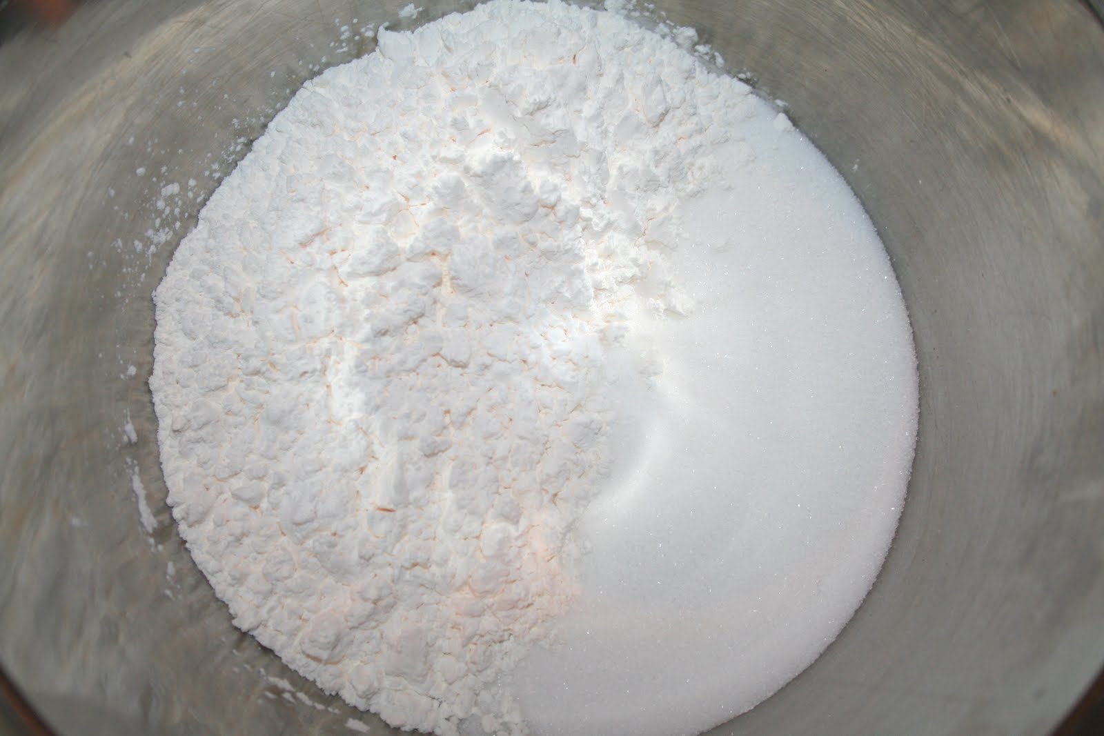 - Préparer enfin la crème à flan! Mettre les 140g de sucre et la poudre à crème dans un récipient.
