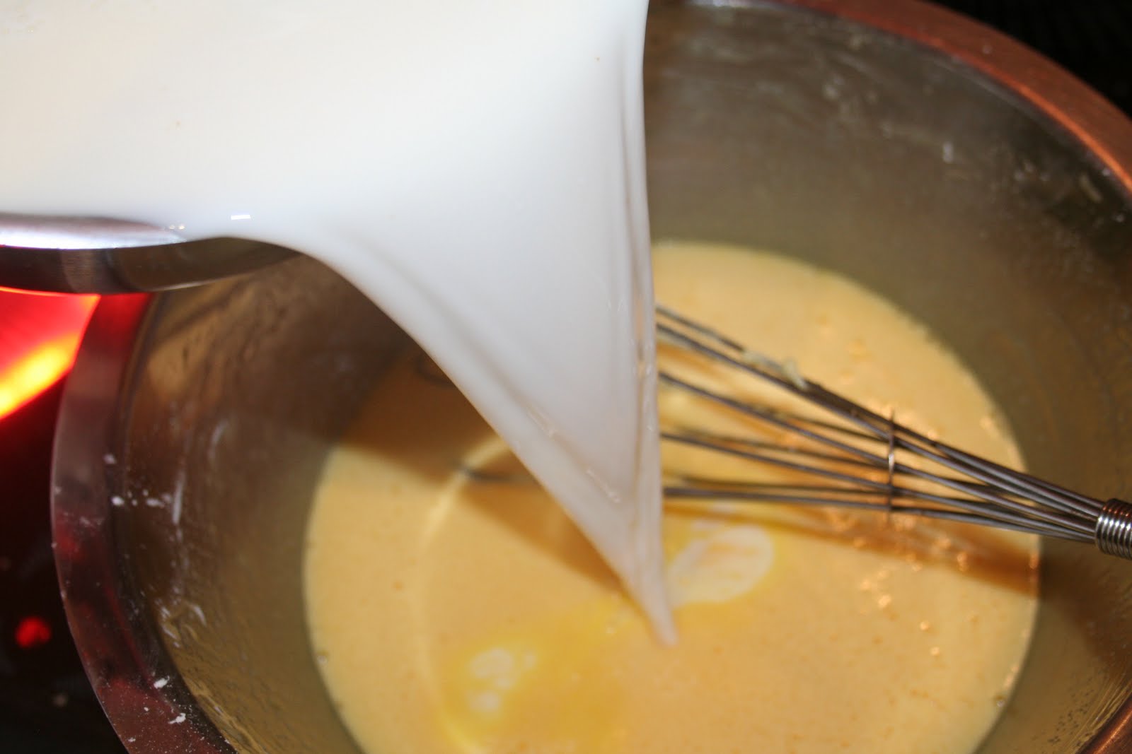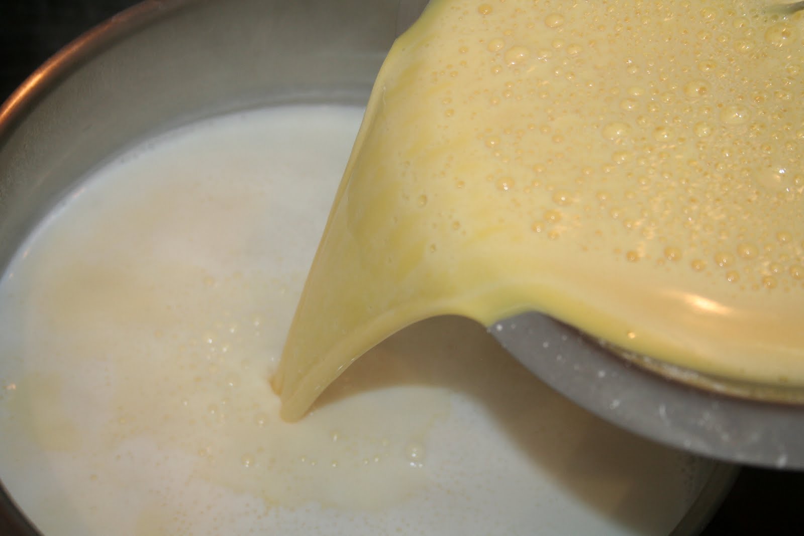 Et reverser ce mélange dans la casserole dans le reste de lait chaud.