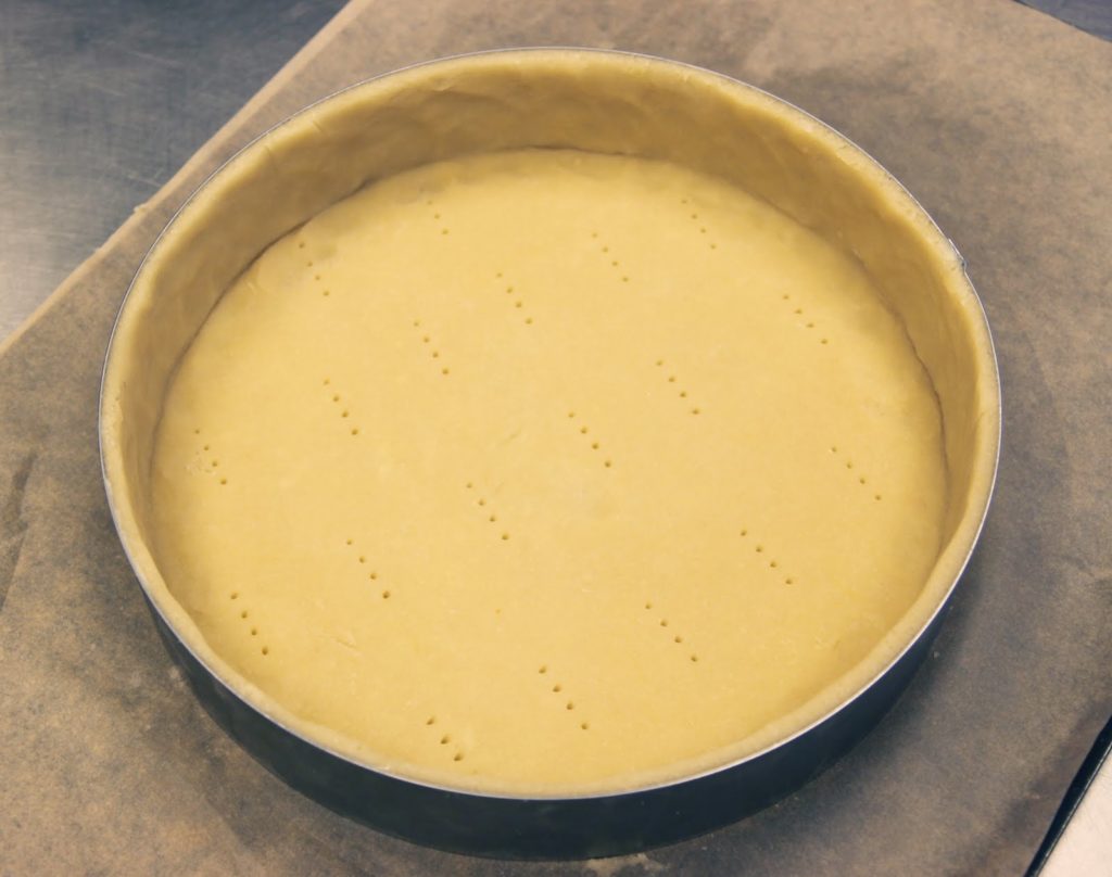 - Foncer un cercle à entremet de 24cm de diamètre. Piquer le fond de pâte puis stocker au réfrigérateur jusqu’à utilisation.