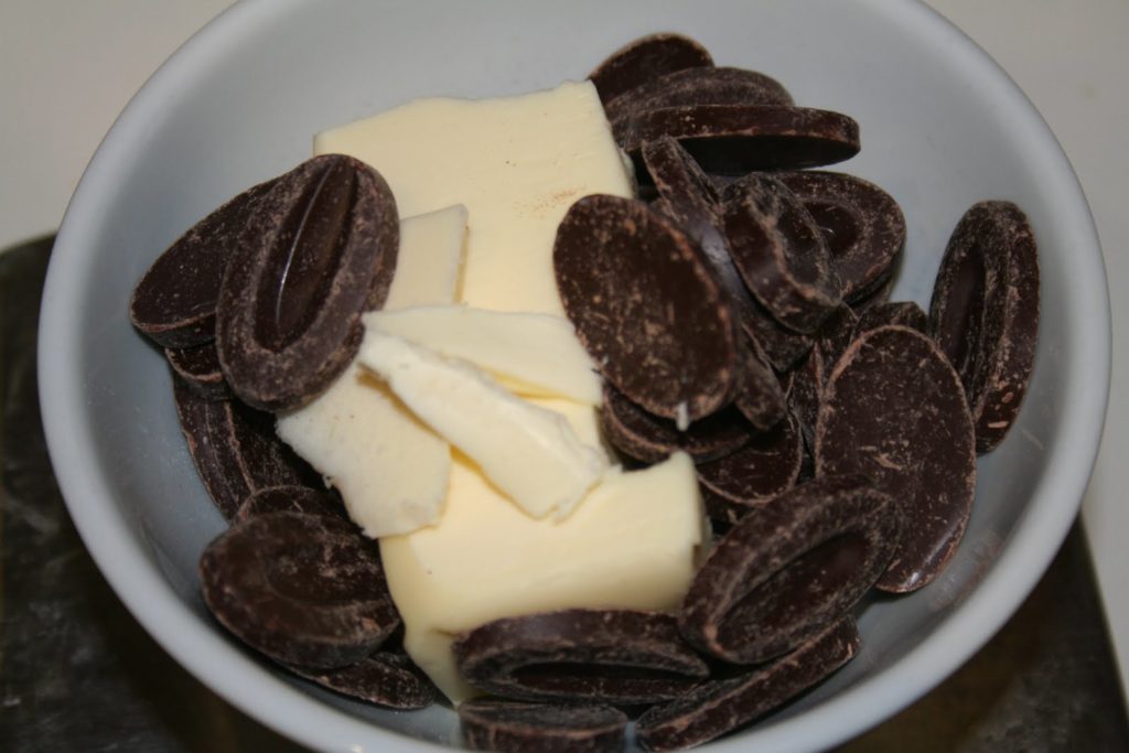 - Faire fondre le chocolat avec le beurre, soit au bain-marie, soit au micro-ondes (1min30).