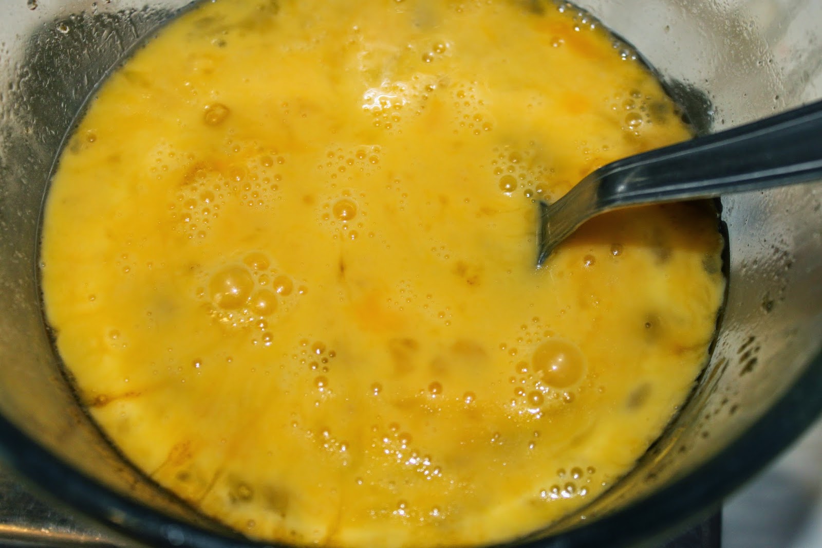 Ajoutez les œufs pesés (environ 3 œufs moyens).