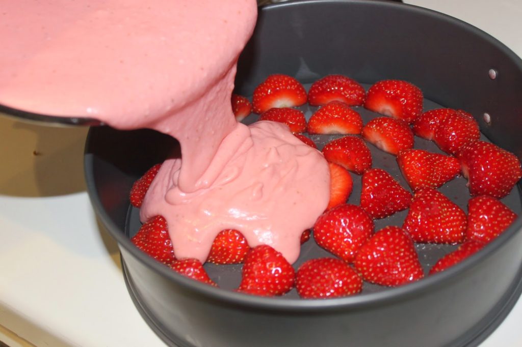 Recette du gâteau aux fraises pour un moule de 20cm :