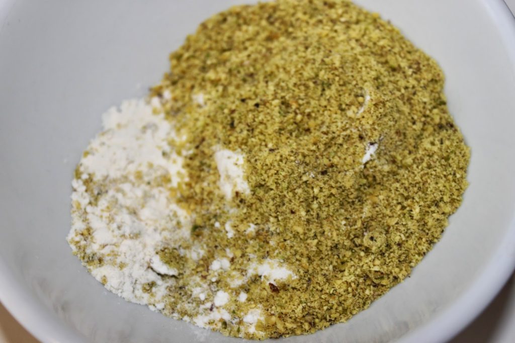 Mélangez pendant ce temps la farine et la poudre de pistache.