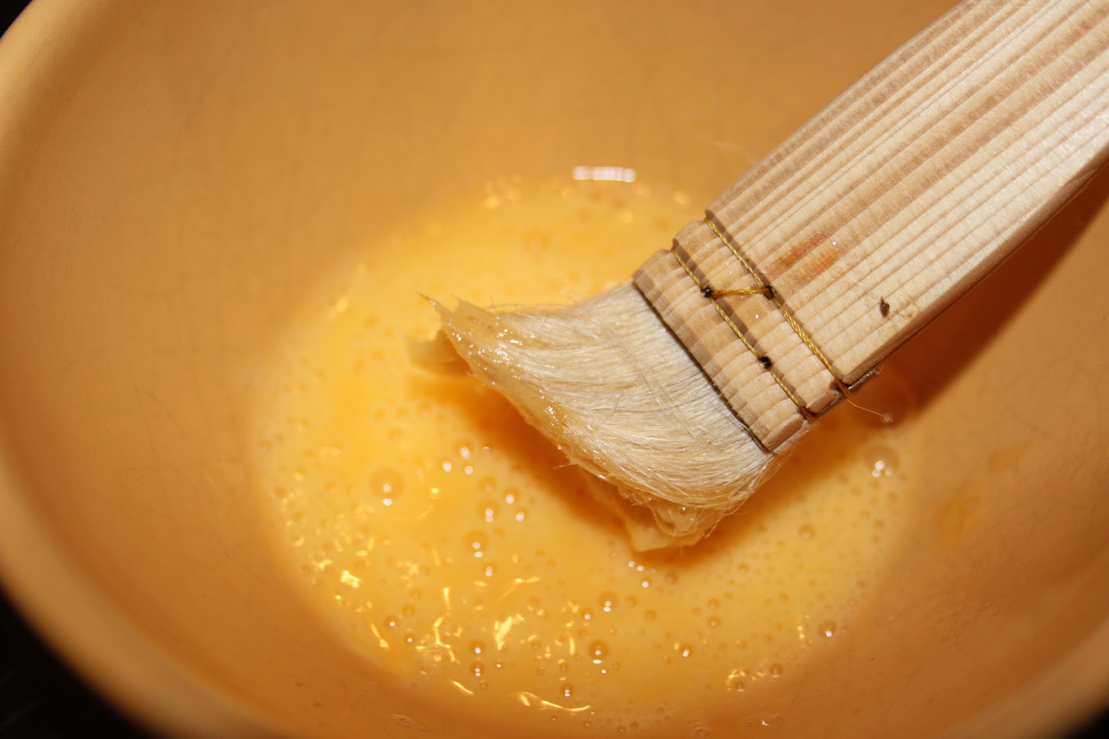 - Passer le pinceau dans un oeuf battu.