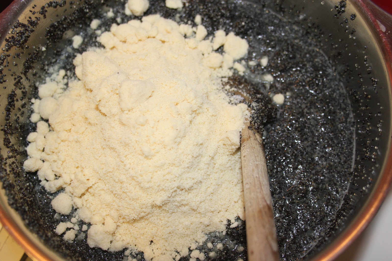 - Mettre la pâte en boule puis la placer au frais dans du film étirable le temps du reste de la recette. Pendant ce temps, mettre le pavot et le lait dans une casserole.