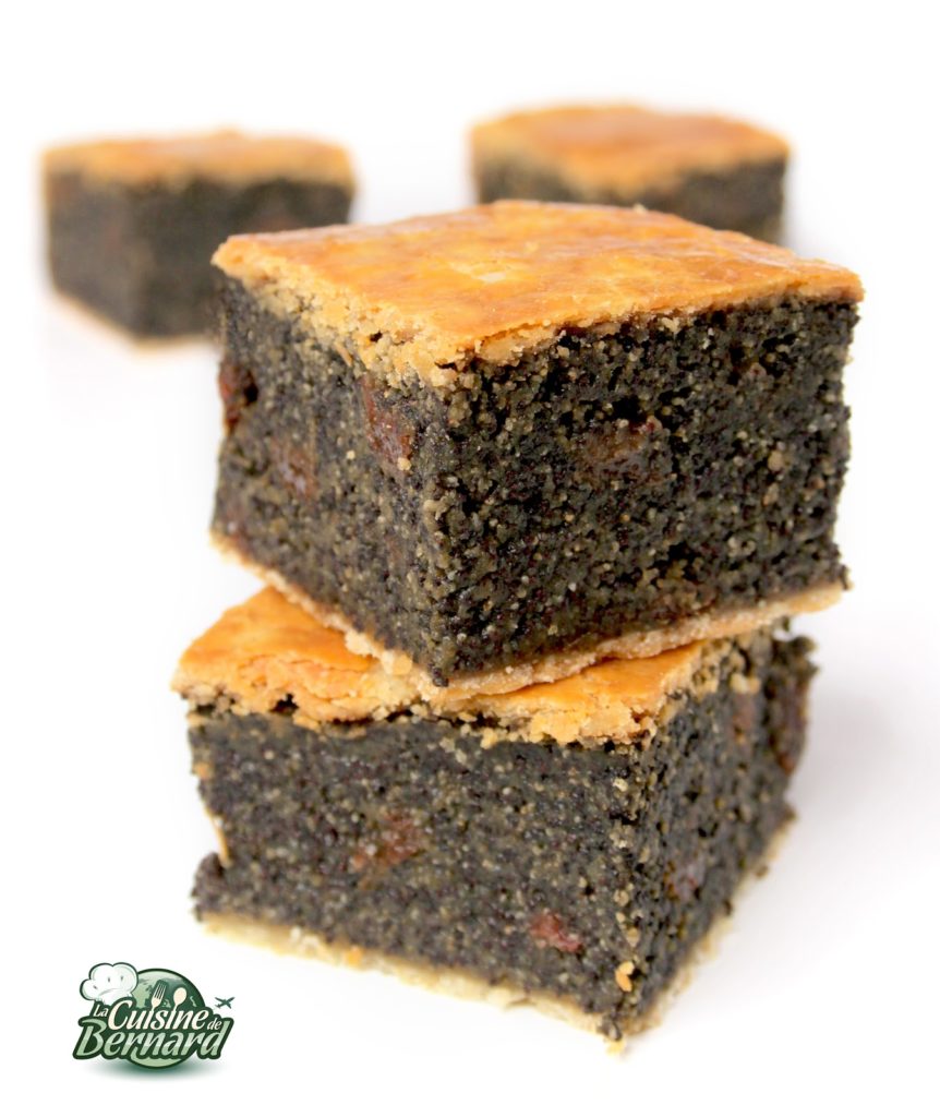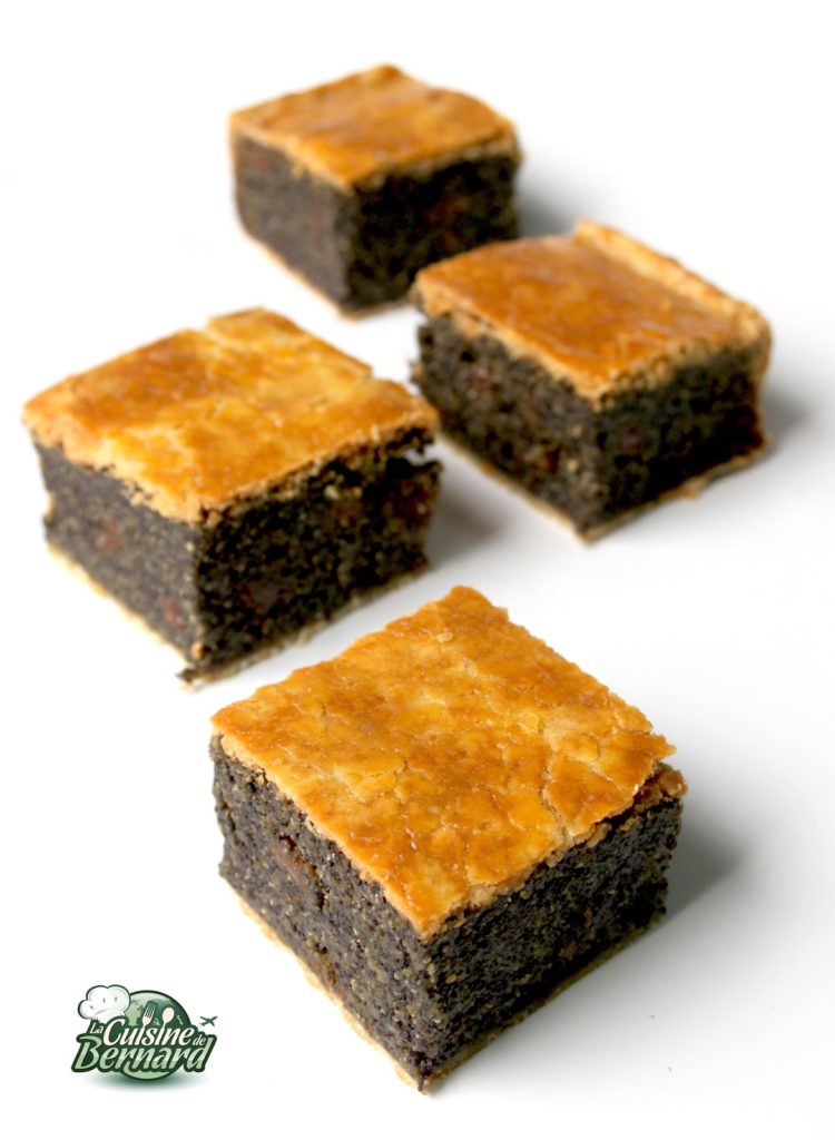 Quand je passe devant les pâtisseries juives de la rue des Rosiers à Paris, je bave toujours devant ce gâteau complètement décadent. Une pâte fine et croustillante avec une farce épaisse aux graines de pavot et aux raisins. Un gâteau craquant et fondant, mais surtout très riche! Alors une petite part suffira! Les graines de pavot ont un goût surprenant, alors lancez-vous!