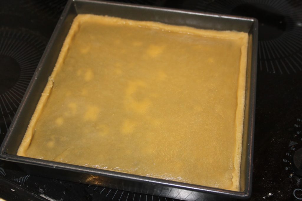 - Étaler finement le dernier tiers de pâte puis placer sur le dessus du moule.