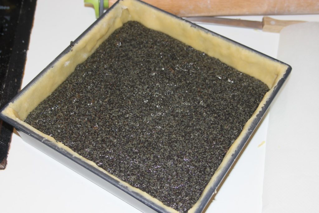 Recette du gâteau aux graines de pavot (pour un moule carré de 21cm sur 21cm) :